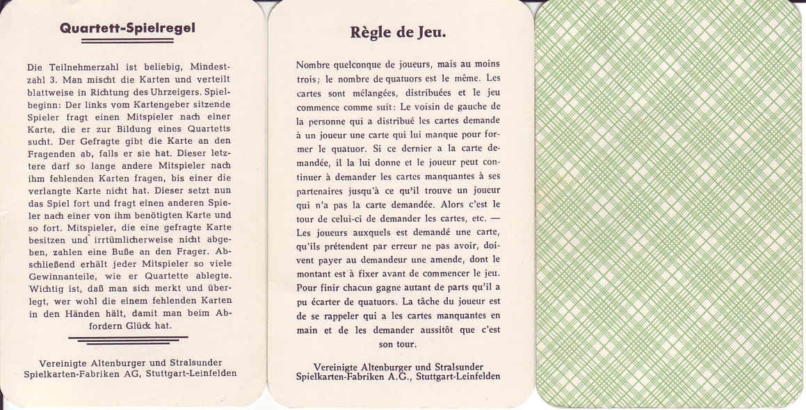 36 Blatt + Deckblatt + Spielregelkarte deutsch + Spielregelkarte englisch (bzw. französisch)